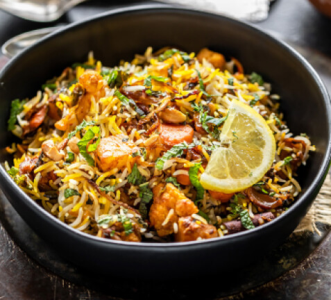 Imagine a dish featuring aromatic basmati rice delicately layered with an array of vibrant,