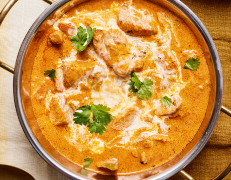Succulent chunks of tandoori-grilled chicken are gently simmered in a rich and velvety gravy