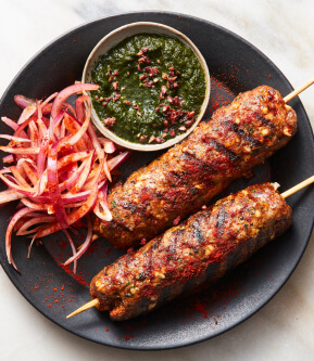 Ground lamb is expertly blended with delicately chopped onions, an assortment of vibrant fresh