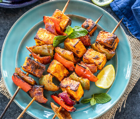 creamy yogurt and a medley of authentic Indian spices. These marinated chunks are then grilled